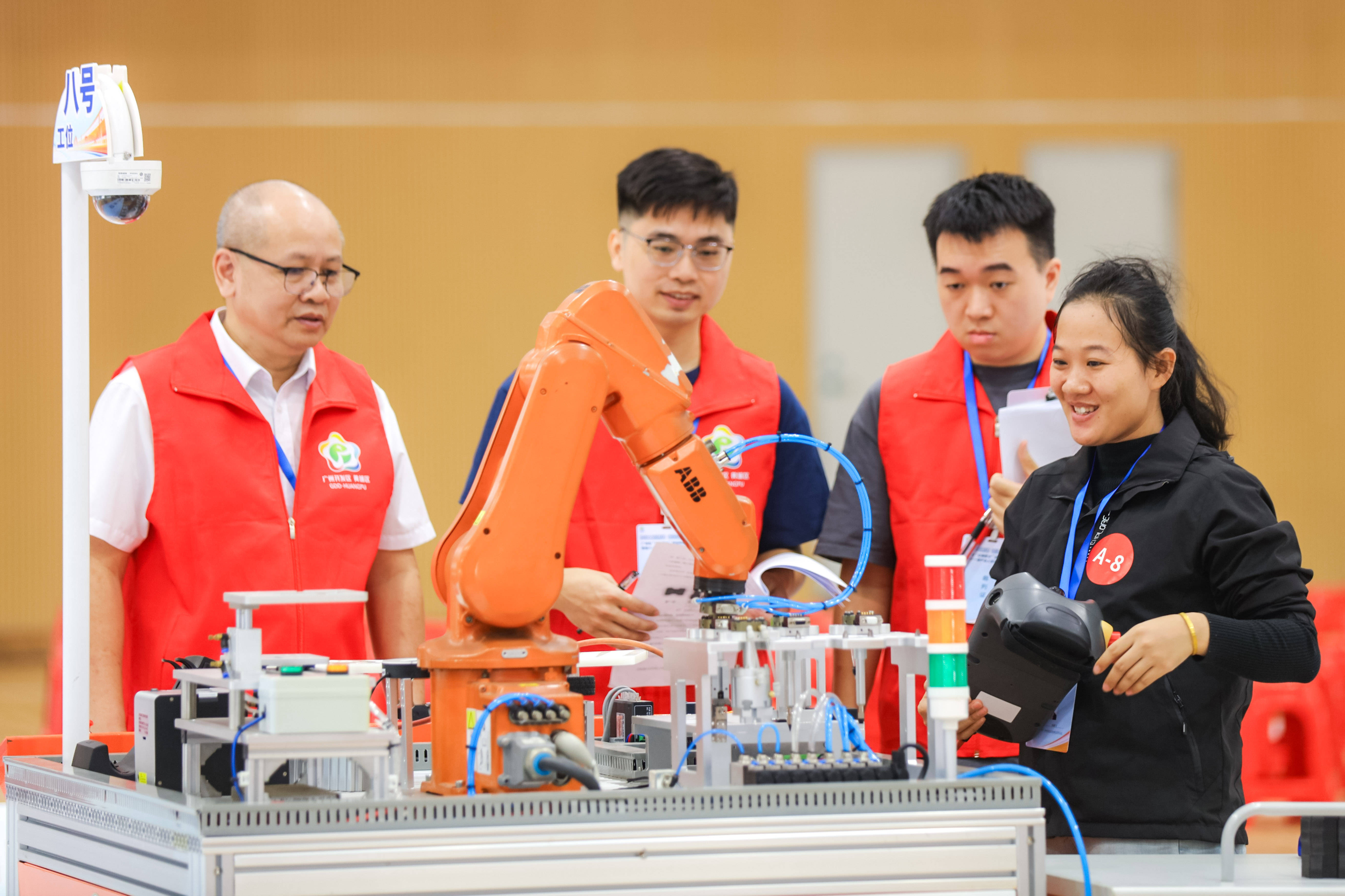 10月21日,广州市“红棉匠才”职业技术竞赛暨第十一届财产人员职业技术竞赛工业机械人系统操做员项目决赛正在广州市黄埔职业手艺学校举办。全市的“机械人批示官”齐聚广州开辟区、黄埔区,以代码为指令,以精度为标尺,正在工人机械人系统操做竞技中展示出精深身手,配合演绎一场出色纷呈的先辈制制业范畴“技术大交锋”。