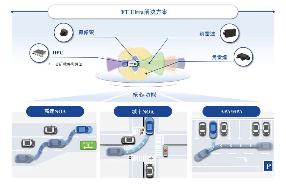 从上市申请书中能够看到,福瑞泰克的驾驶辅帮处理方案包罗FTPro、FTMax和FTUltra,次要使用于智能汽车,并供给笼盖高速公及城市驾驶、泊车等各类场景的各类级别驾驶辅帮能力。