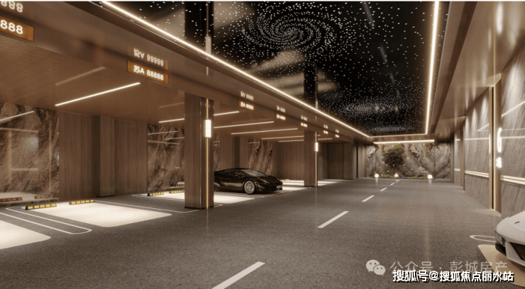 从地上到地下,双精拆挑高峻堂,高定奢华,现代精美的细节连系肌理材量变化,打制卑贱的酒店式归家典礼感!无论是建建材料的细心挑选,仍是灯光照明的巧妙结构,都旨正在为业从打制一个既美妙又适用的栖身。墙面采用木饰面+石材拼接,地面铜质车挡刻有项目LOGO,连消防设备都做了躲藏式处置。业从开车回家,从入库到入户,典礼感间接拉满。