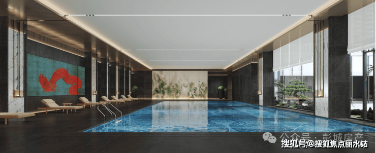 项目自带恒温泳池,延长出“立体山川会所+精拆泛会所架空层”双场景。泳池采用进口过滤系统,水质达到饮用水尺度。